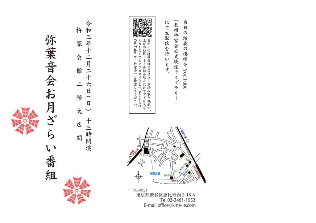 当日の模様はYouTube「長唄 杵家会公式映像ライブラリー」でLive配信されます。